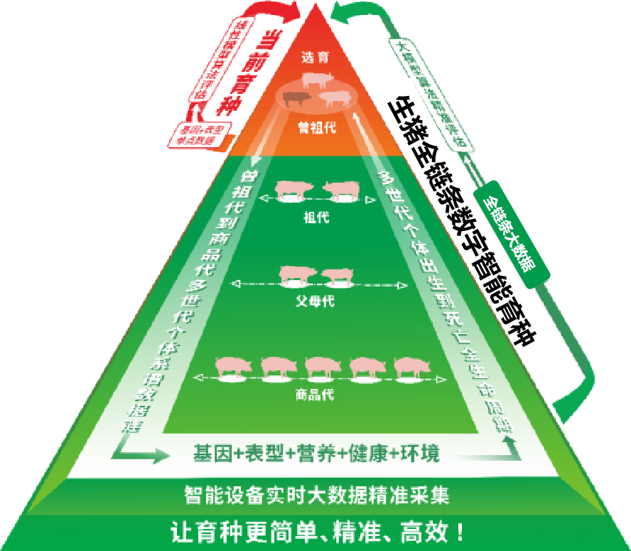 全链条数字智能育种体系可以涵盖不同世代、育种关键环节不同链条数据的高效收集,提升整个生猪育种行业的育种效率。