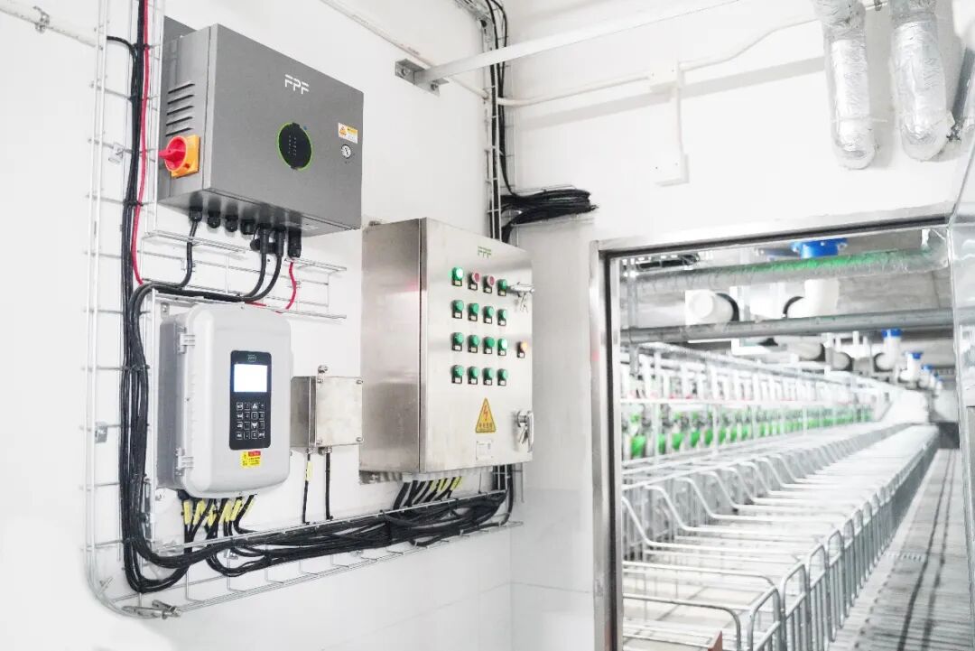 以物联网、4/5G、NB-IOT技术为支撑的未来猪场环控仪设备、控制系统,内嵌生猪不同生长时期的标准环境参数曲线,实时监控饲料量、水量、室内外温度、电压、湿度、压力、风速及舍内CO2、H2S、NH3浓度等,并实现数据实时传输、分析,实现数据化、精准化高效管理,减少人工成本。