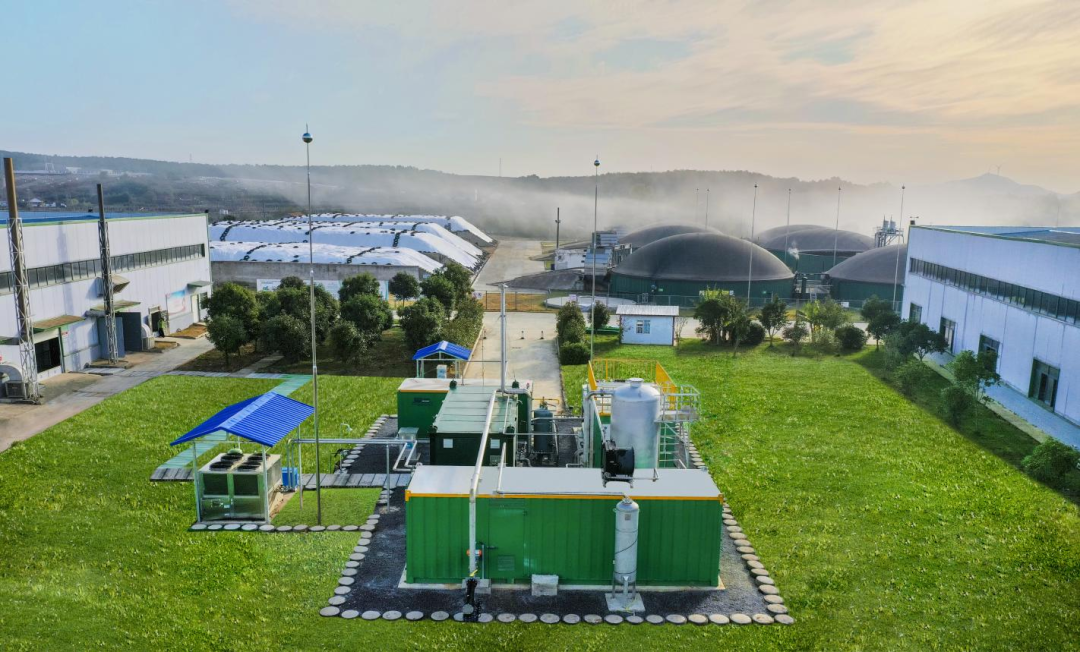 包括有机废弃物预处理、沼气发酵、固液分离、沼气发电、上网系统、热电联产机组余热回收利用、沼气提纯制生物天然气(膜法)、生物天然气压缩和充装站、固态及液态沼肥深加工以及智能监控系统等部分。
