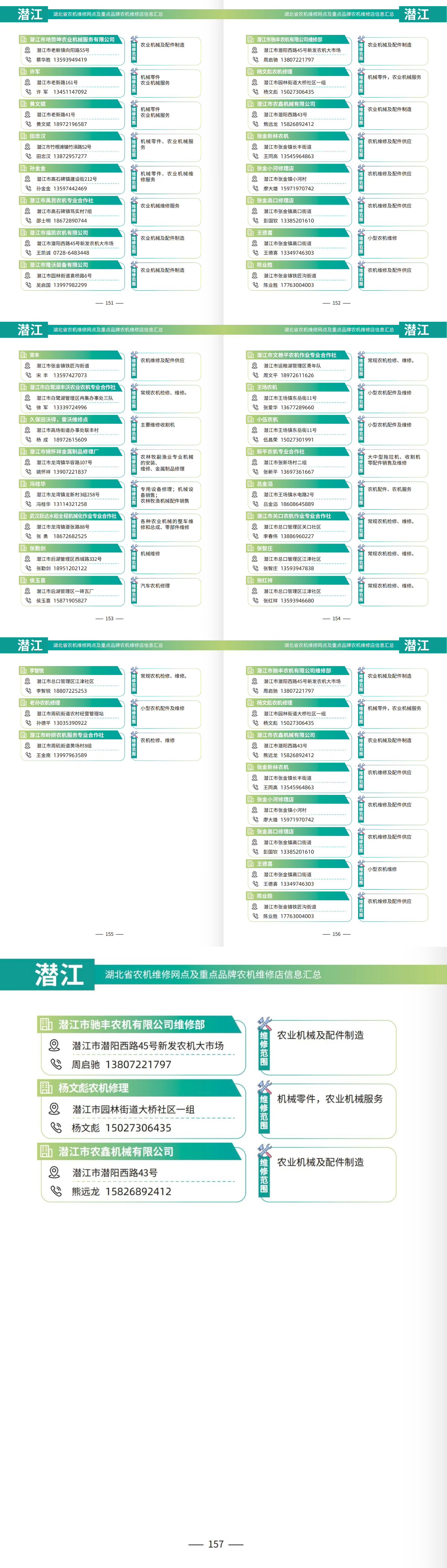 湖北省农机维修网点及重点品牌农机维修店信息汇总——潜江篇
