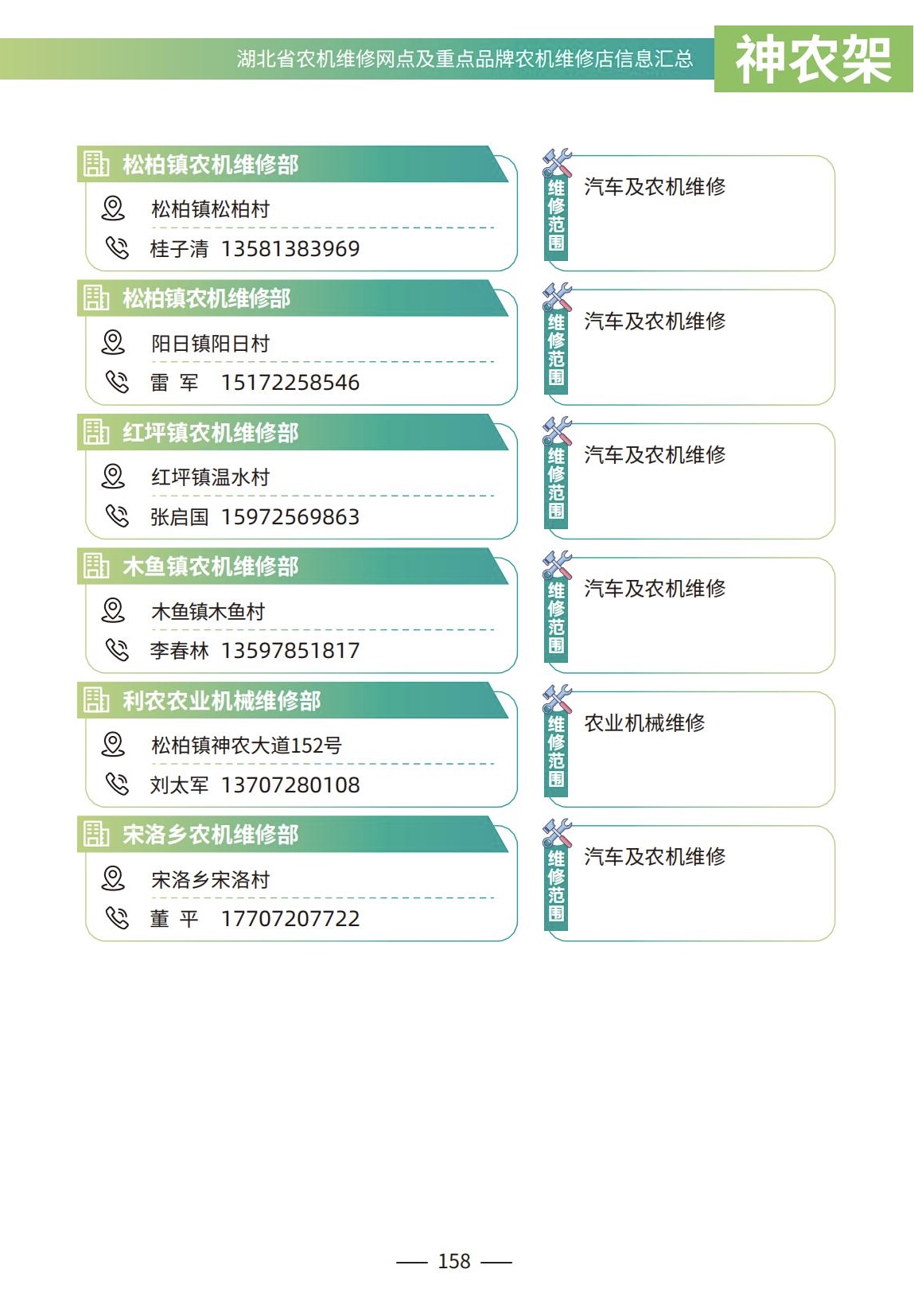 湖北省农机维修网点及重点品牌农机维修店信息汇总——神农架篇